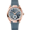 The sun-brushed blue-grey dial is distinguished by a horizontal “teak” pattern, along with a date window at 6H and an opaline Small Seconds subdial featuring an 18K Sedna™ gold ring. The design is further complemented by 18K Sedna™ gold hands and indexes filled with white Super-LumiNova, as well as sandblasted minutes and seconds tracks on the dial and subdial.