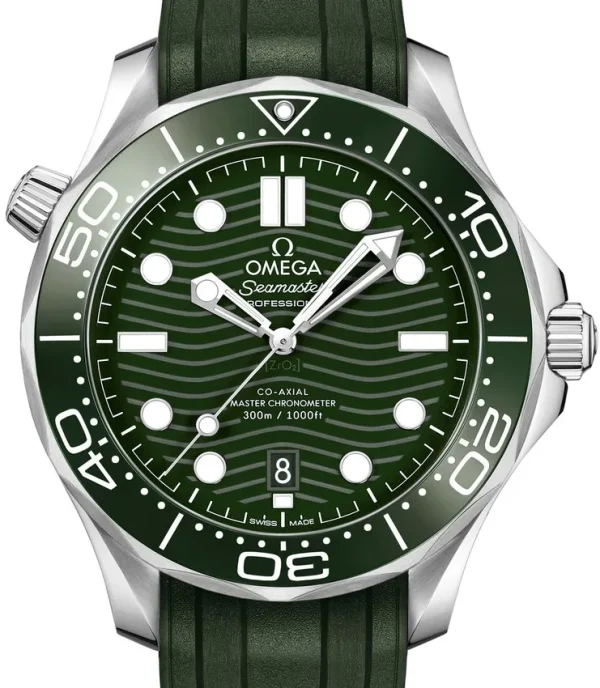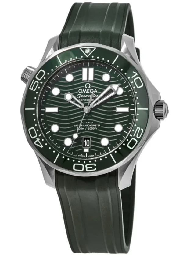 Unworn Omega Seamaster Diver 300M CO?AXIAL MASTER CHRONOMETER 210.32.42.20.10.001. 42 mm, Green dial, Steel case, Ceramic bezel, OMEGA 8800 calibre, Self-winding Movement, 55 hours power reserve, Rubber strap with Pin buckle clasp. Water resistant to 300 m.