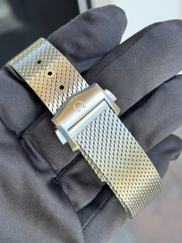 Introducing a stunning, unworn watch OMEGA Seamaster Diver 300M, embodied in the model Ref# 210.90.42.20.10.001 continues its storied journey beneath the waves—this time with a sleek, contemporary twist on its iconic design. Since its debut in 1993, the Seamaster Diver 300M has captured the spirit of ocean exploration, earning a devoted global following. This 42 mm model is a striking fusion of grade 2 titanium and OMEGA’s exclusive 9K Bronze Gold, blending strength with distinctive elegance. Its green oxalic anodized aluminium bezel showcases a diving scale illuminated by vintage Super-LumiNova, giving the watch a timeless, heritage-inspired glow. The sandblasted green aluminium dial continues the theme, adorned with PVD 18K Bronze Gold hands and blackened indexes, all generously filled with vintage Super-LumiNova for optimal visibility. Light brown and red transfers add a subtle yet refined contrast, including the OMEGA logo. Crafted for the depths and designed for clarity, this timepiece is equipped with a domed, scratch-resistant sapphire crystal, offering exceptional durability while maintaining a pristine view of the dial. The crystal also features an anti-reflective coating on the inner surface, minimizing glare and enhancing legibility in all lighting conditions. A helium release valve is seamlessly integrated into the case, ensuring the watch remains uncompromised during professional saturation dives. This essential feature protects the integrity of the timepiece under extreme pressure, making it a true companion for deep-sea explorers. Beneath the surface, the watch is powered by the OMEGA Co-Axial Master Chronometer Calibre 8806 with beating at 25,200 vph, with 35 jewels and a 55-hour power reserve, visible through the sapphire-crystal caseback and certified for outstanding precision, magnetic resistance, and performance by METAS. Completing the look is a Titanium brushed mesh bracelet with secure Titanium Foldover clasp, merging classic dive-watch heritage with a modern, ergonomic feel. Built for precision, designed for adventure and comfortable for everyday wear, the Seamaster Diver 300M, water resistant to 300 meters, remains a legend in every sense.