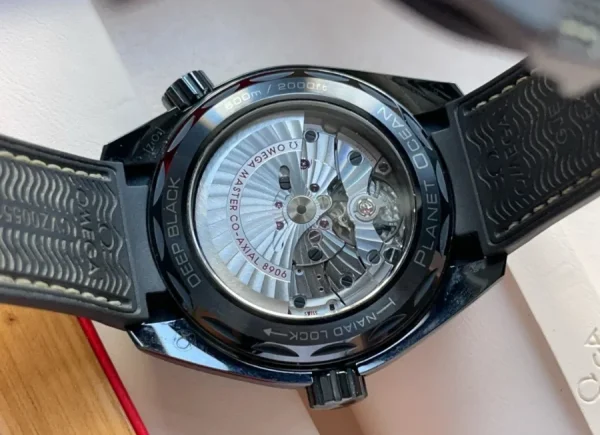 Other features include an alveol pattern on the screw-in caseback and a black rubber strap with contrasting stitching and an anti-bacterial treatment on the lining. The Planet Ocean “Deep Black” is water-resistant to 60 bar and is driven by the OMEGA Master Chronometer calibre 8906. To achieve Master Chronometer status, it has passed the 8 rigorous tests set by METAS (The Swiss Federal Institute of Metrology).