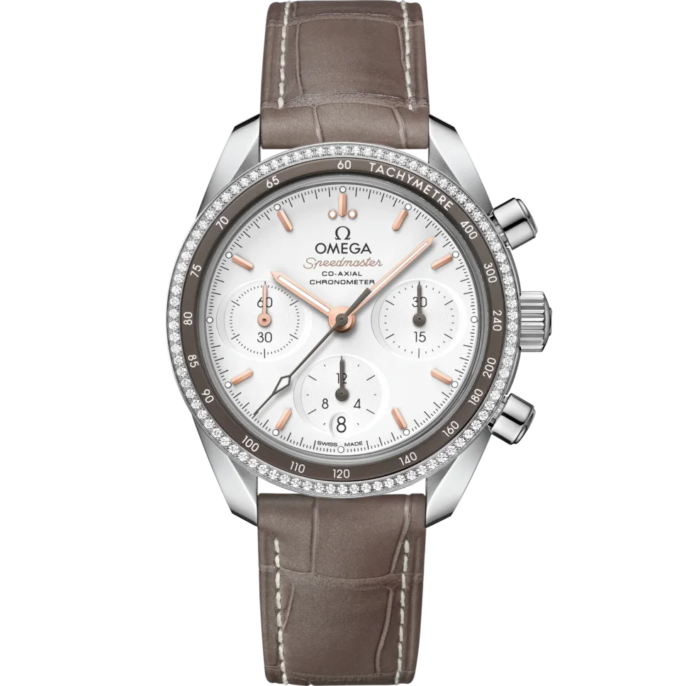 Omega Speedmaster 38 White Dial 38 mm with Diamonds Stainless Steel Strap 324.38.38.50.55.001