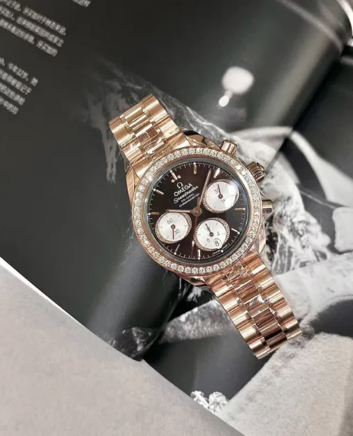 Omega Speedmaster 38 Brown Dial 38mm with Diamond Sedna? 18k Rose Gold Bracelet 324.55.38.50.63.001
