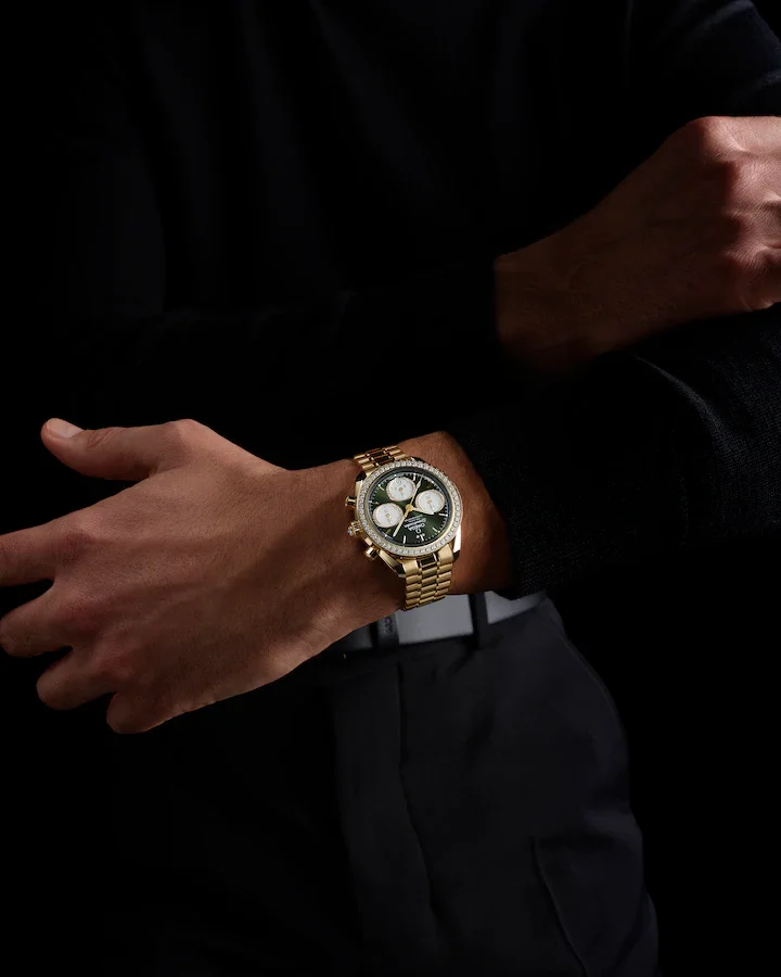 Omega Speedmaster 38 Green Dial 38mm with Diamonds Moonshine? 18k Rose Gold Bracelet 324.55.38.50.60.001