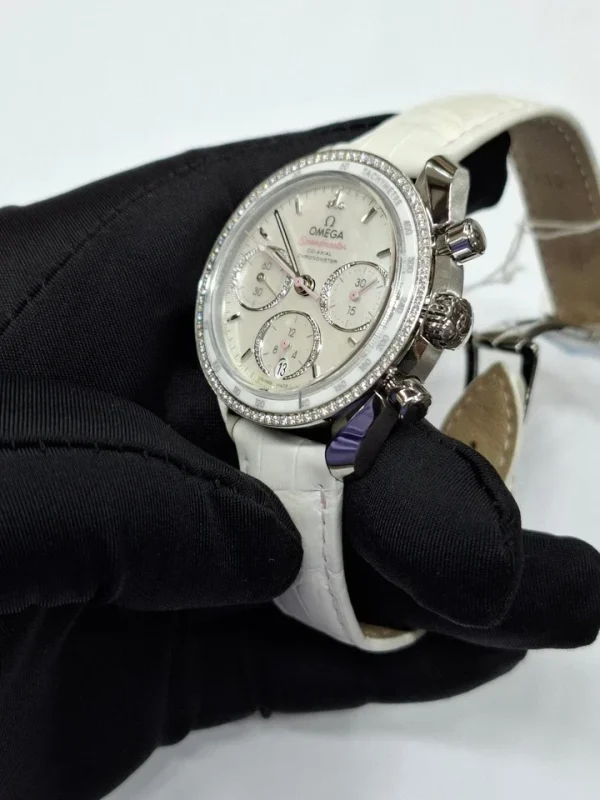 Omega Speedmaster 38 White Dial 38 mm with Diamonds Stainless Steel Strap 324.38.38.50.55.001