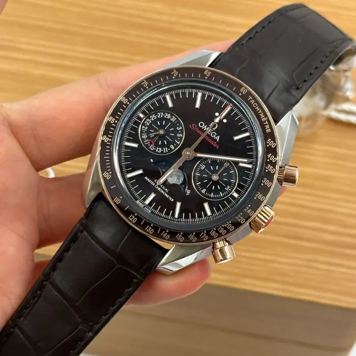 Omega Speedmaster Moonphase Brown Dial 44.25mm Stainless Steel Sedna? gold Strap 304.23.44.52.13.001