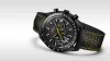 Adorned with a perforated black rubber strap with a yellow interior, this model exudes sophistication, highlighted by a yellow chronograph seconds hand and a laser-engraved tachymeter scale filled with white enamel on the bezel. Its patent-pending small-seconds subdial features a Grade 5 titanium hand shaped like the Saturn V rocket, meticulously crafted with laser techniques to capture intricate textures and colors.