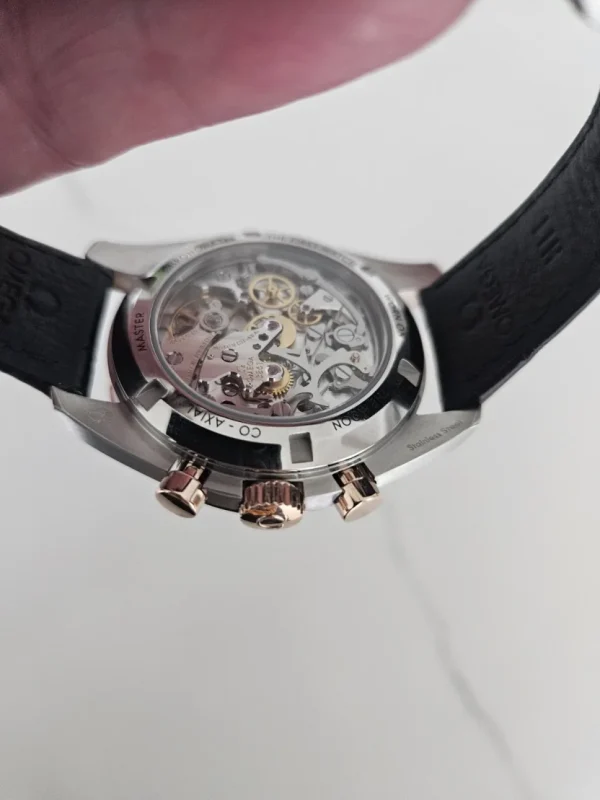 The OMEGA Speedmaster Moonwatch Professional in Sedna Gold is an extraordinary timepiece, celebrating OMEGA’s rich history and pioneering legacy. Inspired by the iconic chronograph that journeyed to the moon, this 42mm model pairs stainless steel with exclusive 18K Sedna Gold for an elegant two tone finish. The sapphire crystal glass on both the front and caseback reveals its intricate craftsmanship. The design reflects the classic, 4th-generation Speedmaster style, featuring a black ceramic bezel with OMEGA Ceragold tachymeter markings, including the sought after “dot over ninety.”
