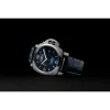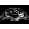 Blue sun-brushed with luminous Arabic numerals and hour markers. Date at 3 o’clock and small seconds at 9 o’clock