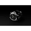 Black with luminous Arabic numerals and hour markers. Date at 3 o’clock and small seconds at 9 o’clock