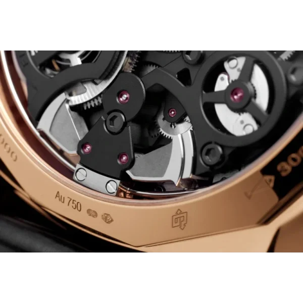 Hand-wound mechanical, P.2005/MR calibre, 16 1/4 lignes, 10,35mm thick, 59 jewels, Glucydur® balance, 28,800 vibrations/hour, Incabloc® anti-shock device. Power reserve 4 days, two barrells. 633 components
