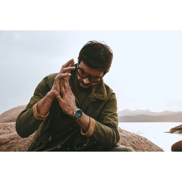 Brushed eSteel™ ceramic anti-clockwise rotating bezel with graduated scale