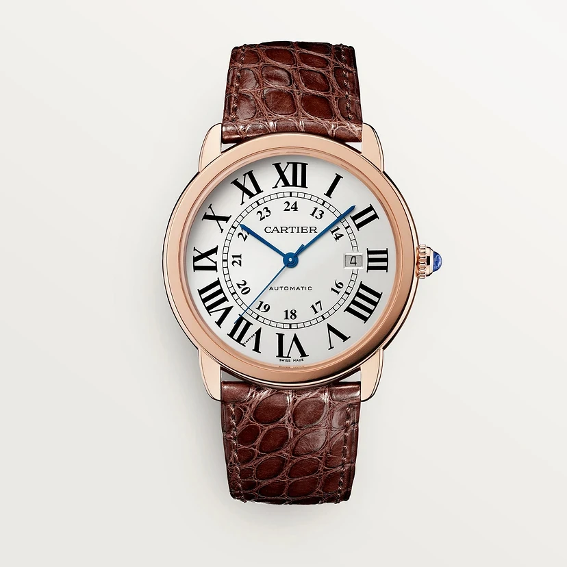 • Polished 18kt rose gold case, bezel & crown.