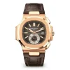 Patek Philippe Nautilus Watches. 40.5mm 18K rose gold case, sapphire crystal back, screw-down crown, black-brown dial with gold applied hour markers with luminescent coating, self winding caliber CH 28-520 C movement with 60-minute and 12-hour monocounter chronograph and date, approximately 55 hour of power reserve, matt dark brown alligator strap with Nautilus fold-over buckle. Water resistant to 120 meters.