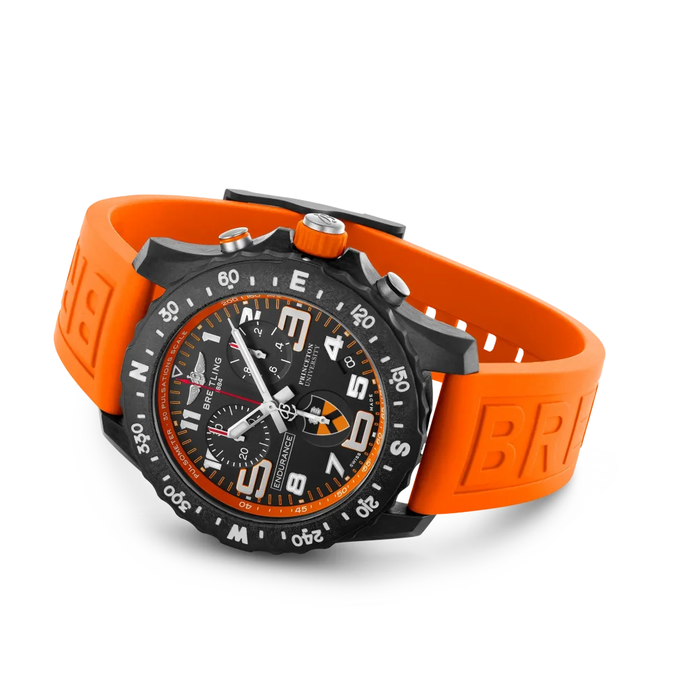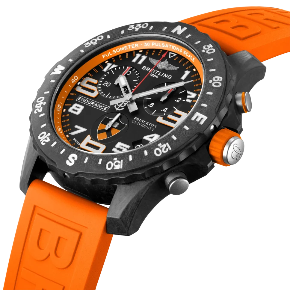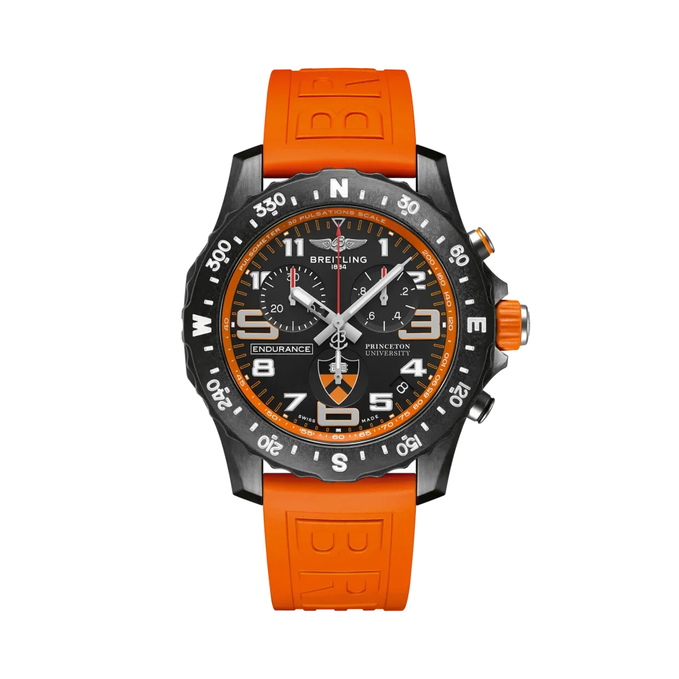 There’s a reason we call our Endurance Pro “the ultimate athleisure watch.” It’s because it can make the rounds from class to work to the gym without missing a beat. (Sound like a soon-to-be graduate you know?) Powered the Breitling Caliber 82, a COSC-certified SuperQuartz™ movement, the Endurance Pro (Princeton® University Edition) is the Ivy League of precision. The nostalgic Princeton® Orange strap and university shield on the dial and caseback make this a gift to wear and treasure, long after this year’s grads have turned the tassel. Designed for men and women whose active lives blend a professional mindset with a sporty lifestyle, the Endurance Pro is equal to the challenges of a rigorous workout but fashionable enough for everyday wear. The Endurance Pro features an ultra-light Breitlight® case, a robust material 3.3 times lighter than titanium and 5.8 times lighter than stainless steel. Non-magnetic, thermally stable and hypoallergenic, Breitlight® is highly resistant to scratches, traction and corrosion. It also has a touch that is warmer than metal and a slightly textured effect accentuating the originality of the design. Exclusive to Breitling, it is 100% Swiss-made.