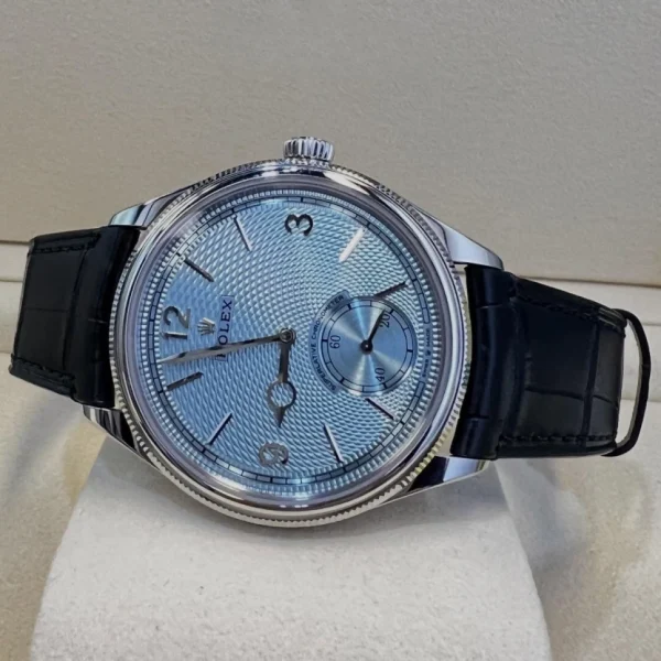Rolex 1908 Platinum Ice Blue Dial Black Alligator Strap – 52506-0003