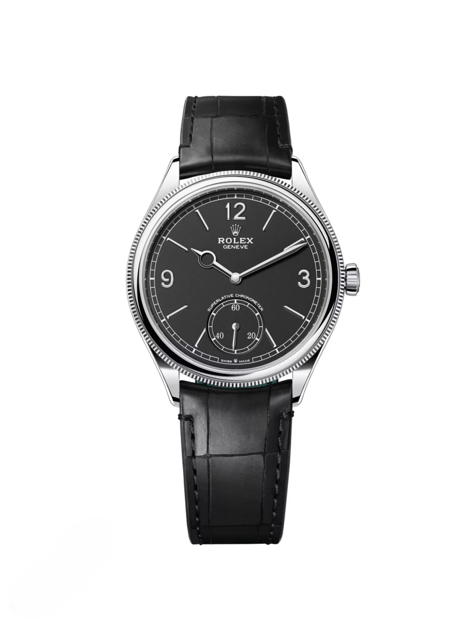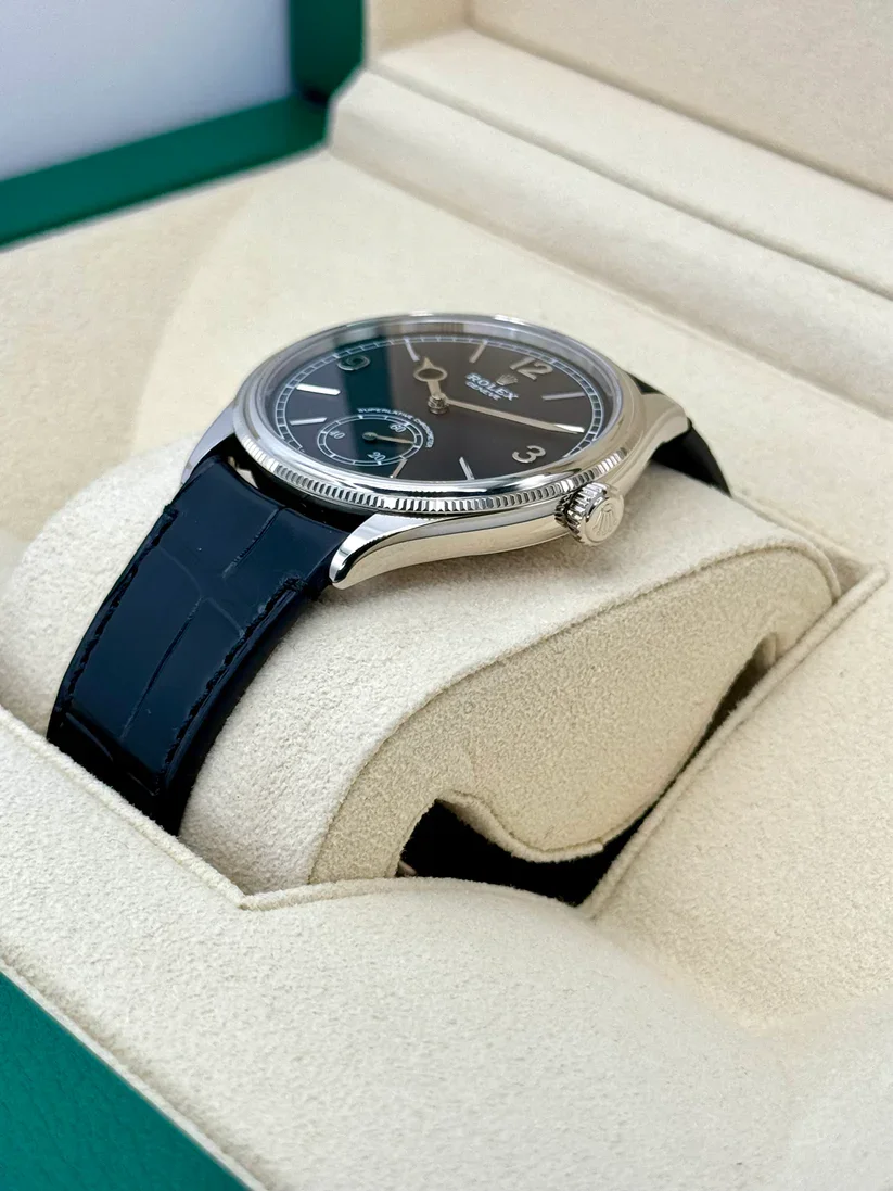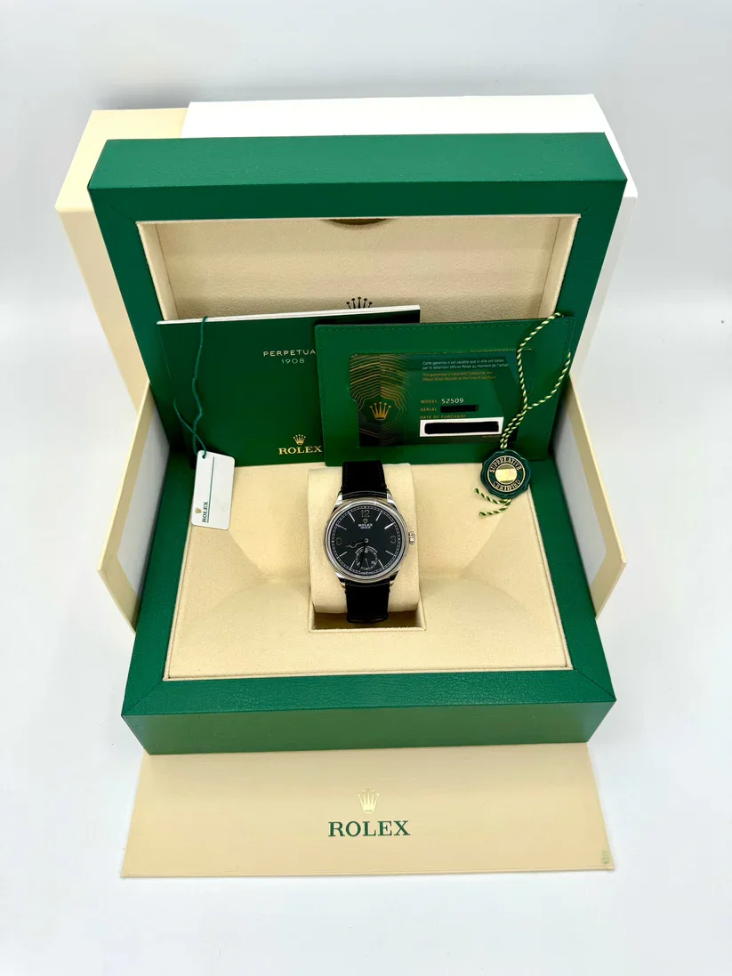 Rolex 1908 White Gold Black Dial Black Alligator Strap – 52509-0002