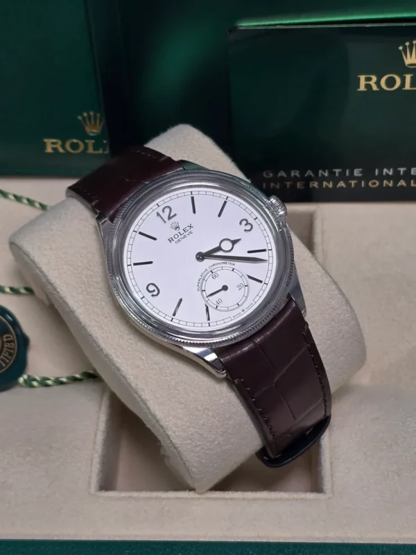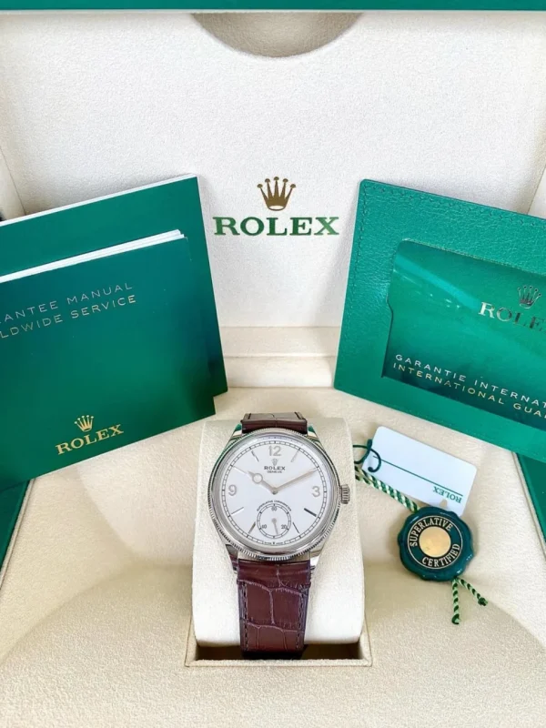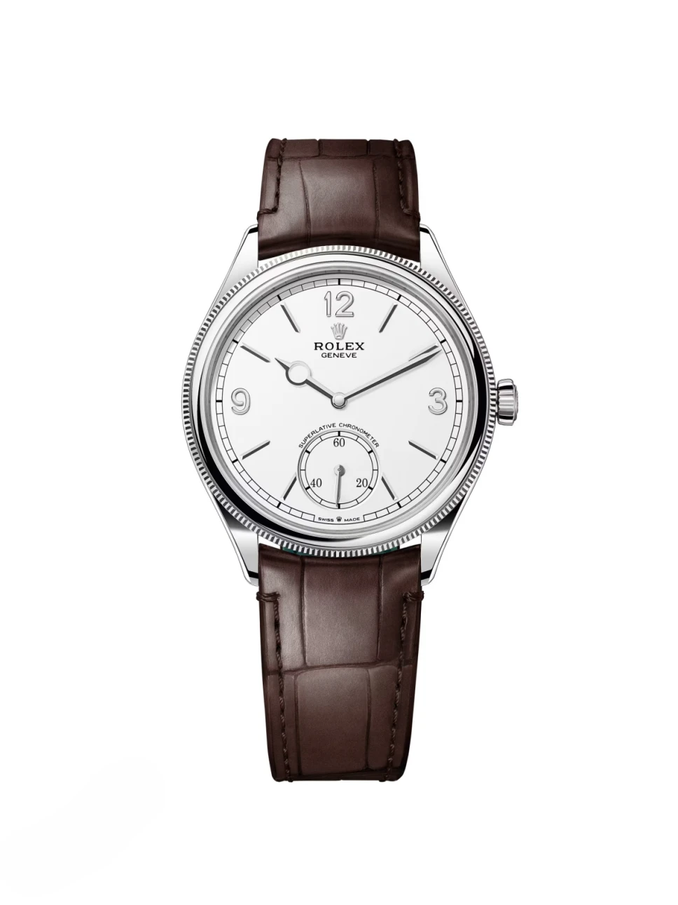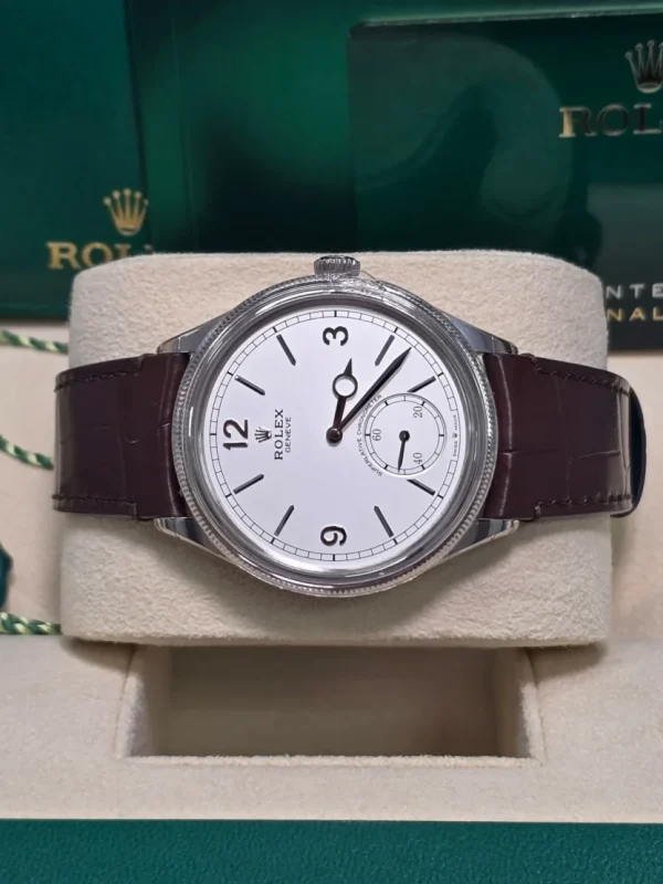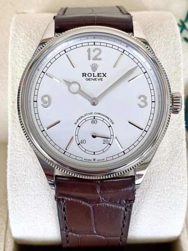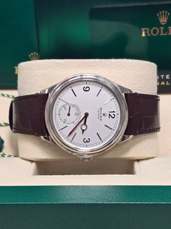 Rolex 1908 White Gold White Dial Brown Alligator Strap – 52509-0006
