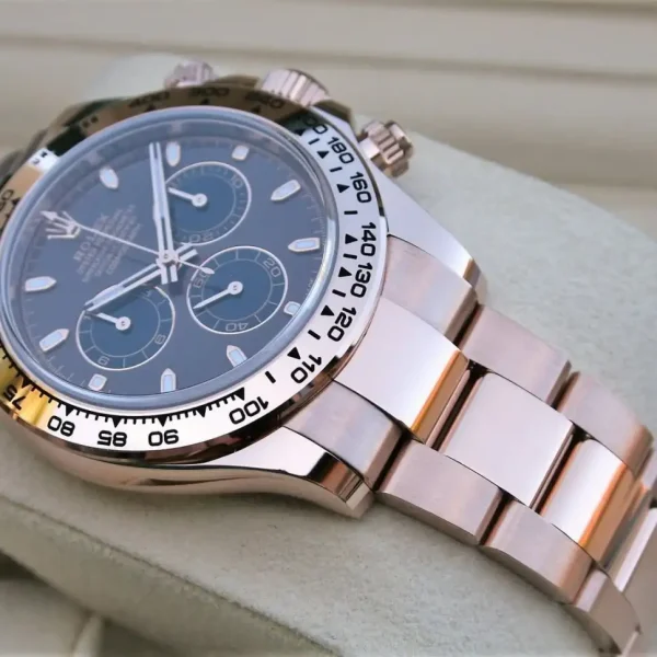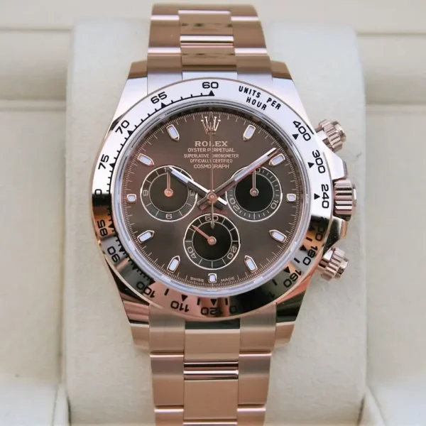 CASE | – 40mm Oyster Case – 5 Layer 18k Rose Gold plated over Solid 904L Stainless Steel, Monobloc Construction – Screw-Down Case-Back & Winding Crown – ROLEX ROLEX Laser Engraving on Rehaut Ring with Correct Alignment – Dimensions and Weight is Exact 1:1 Identical with Original |