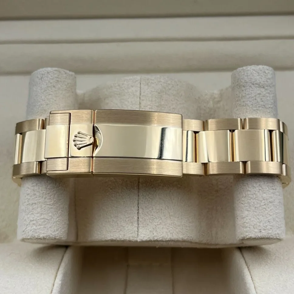 | BRACELET | – Oyster design, 18k gold plated flat three-piece links – Made with Solid 904L Grade Stainless Steel with DLC scratch-protection coating and 18k Yellow Gold plating – Solid threaded screws, so you can easily remove bracelet links with just a small screwdriver – Folding OysterLock Safety Clasp with Easylink 5 mm Comfort Extension System, exactly as Original |