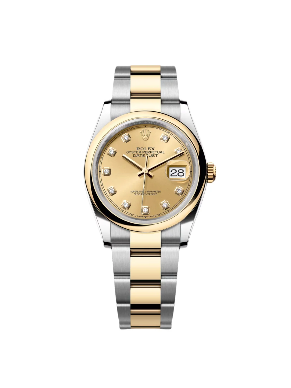 Rolex Datejust 36mm 126203 Champagne Set with Diamonds Dial Domed Bezel Oyster Bracelet