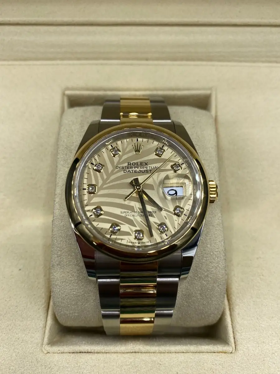 Rolex Datejust 36mm 126203 Golden Palm Dial Domed Bezel Oyster Bracelet