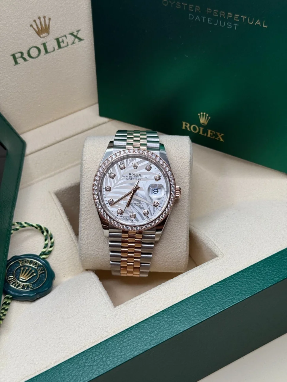 Rolex Datejust 36mm 126281 Silver Palm Motif Diamond Dial Oyster Bracelet