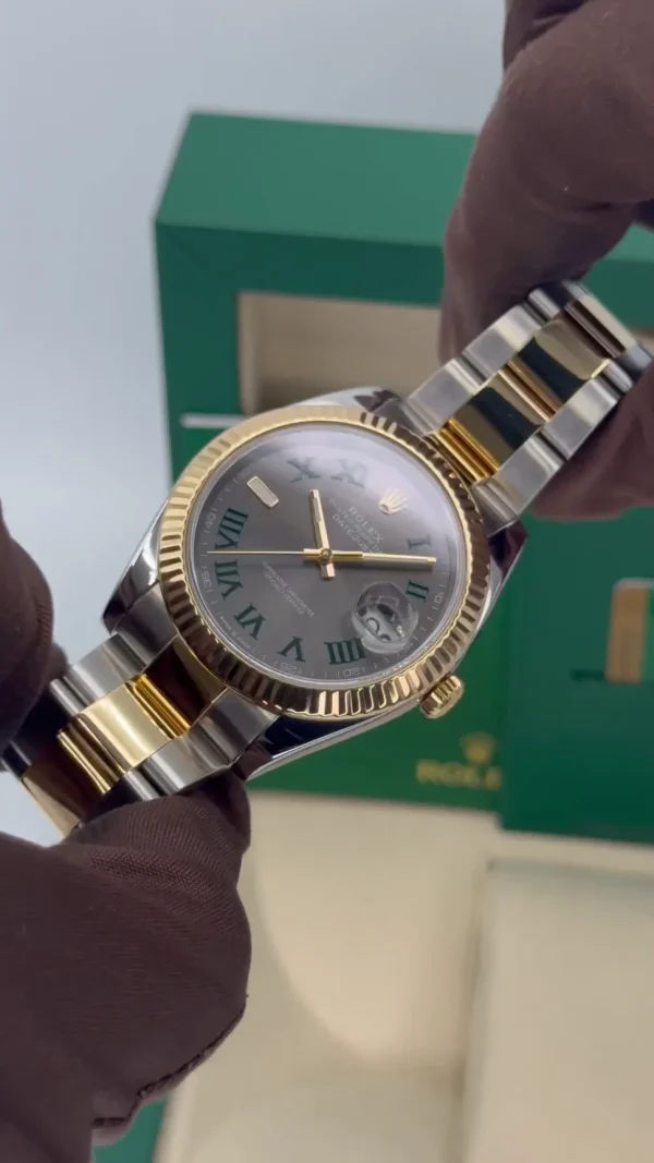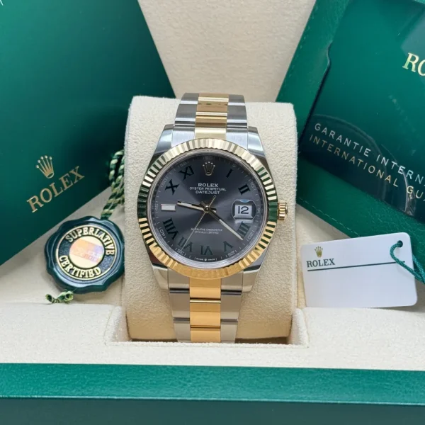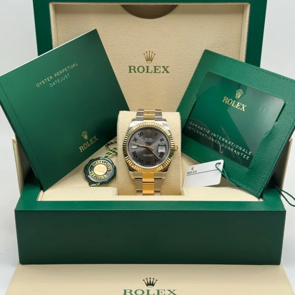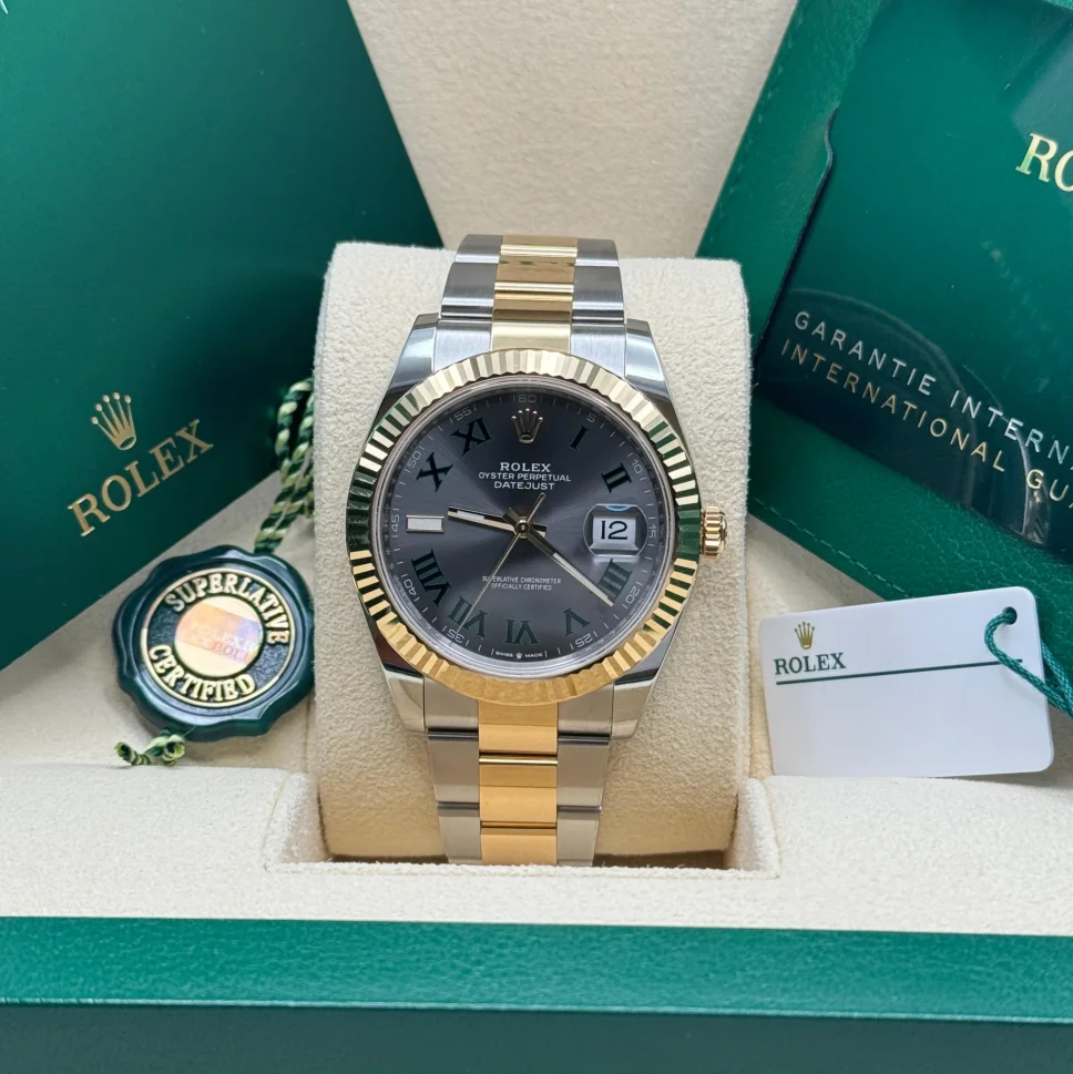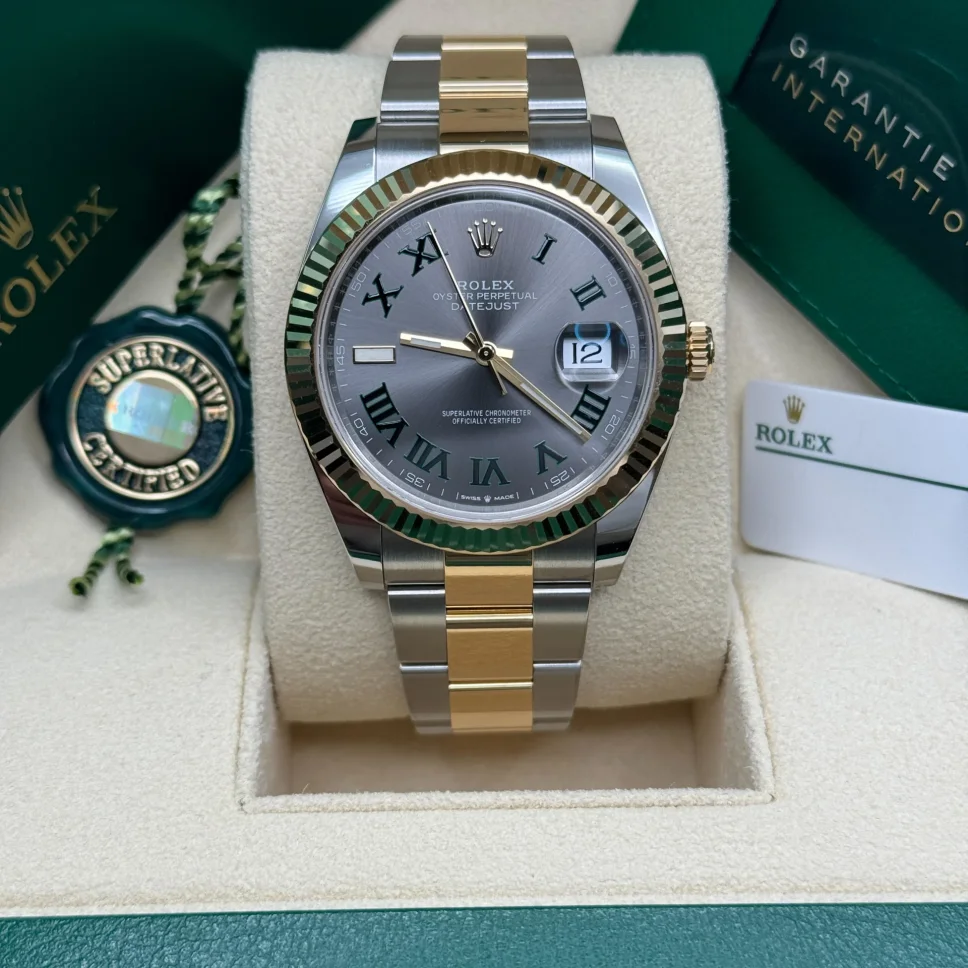 Rolex Datejust 41mm 126333 Two-Tone Yellow Gold Fluted Bezel “Wimbledon” Dial Oyster