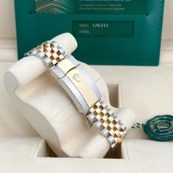 BRACELET | – Two Tone Oyster Bracelet, three-piece flat links/five-piece flat links – Made with Solid 904L Grade Stainless Steel with DLC scratch-protection coating and 18k Yellow Gold plating on the middle links – Solid threaded screws, so you can easily remove bracelet links with just a small screwdriver – Folding Oysterclasp with Easylink 5 mm comfort extension link, exactly as Original |