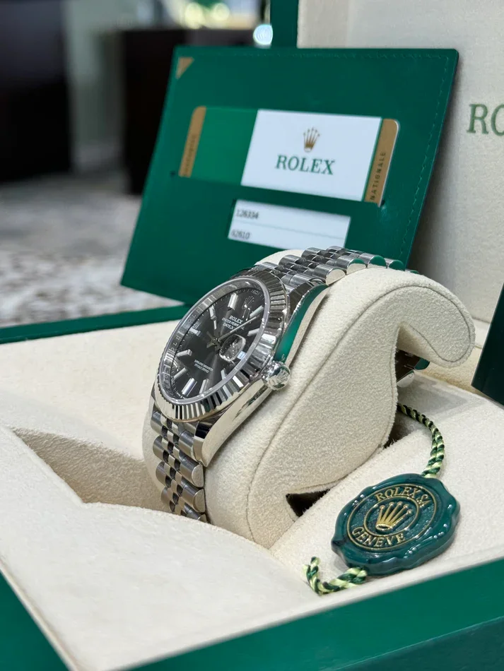 Rolex Datejust 41mm 126334 Dark Rhodium Index Jubilee Stainless Steel