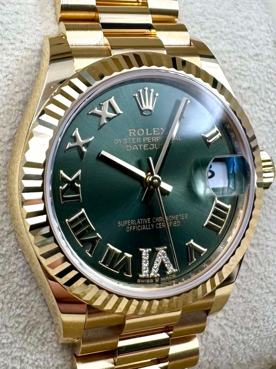 Dial Color Olive green set with diamonds