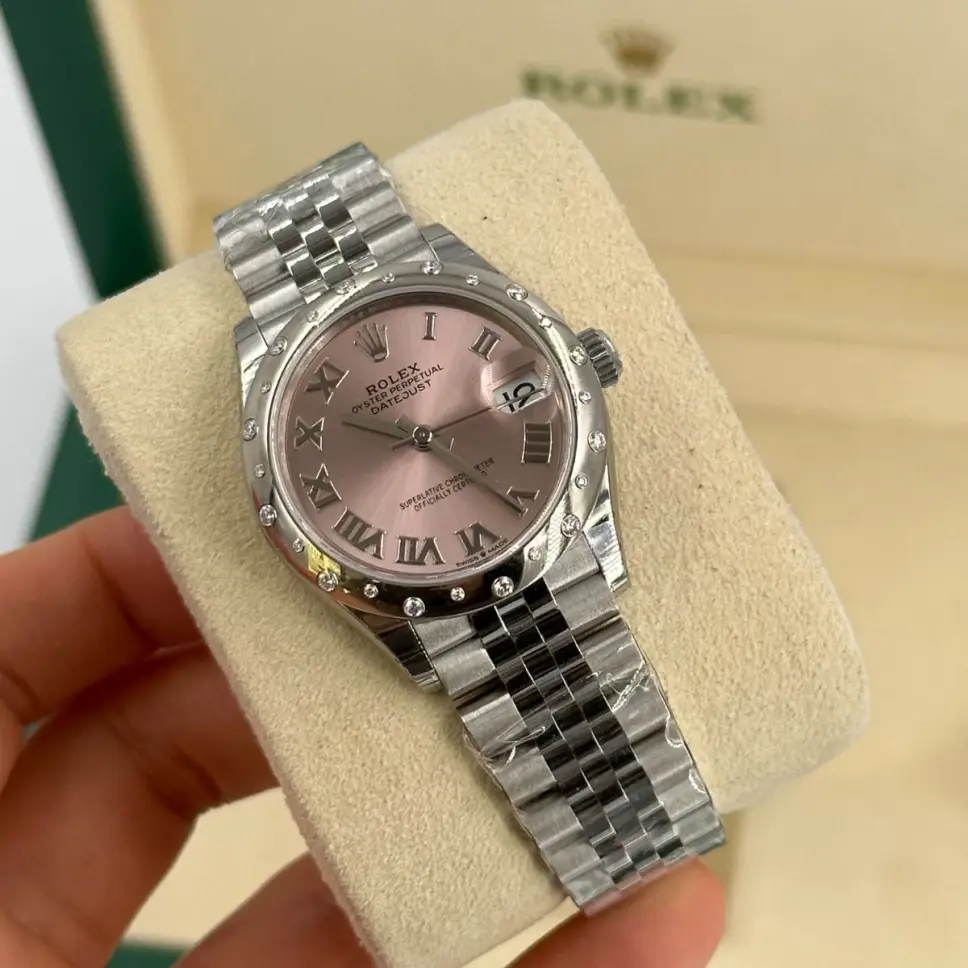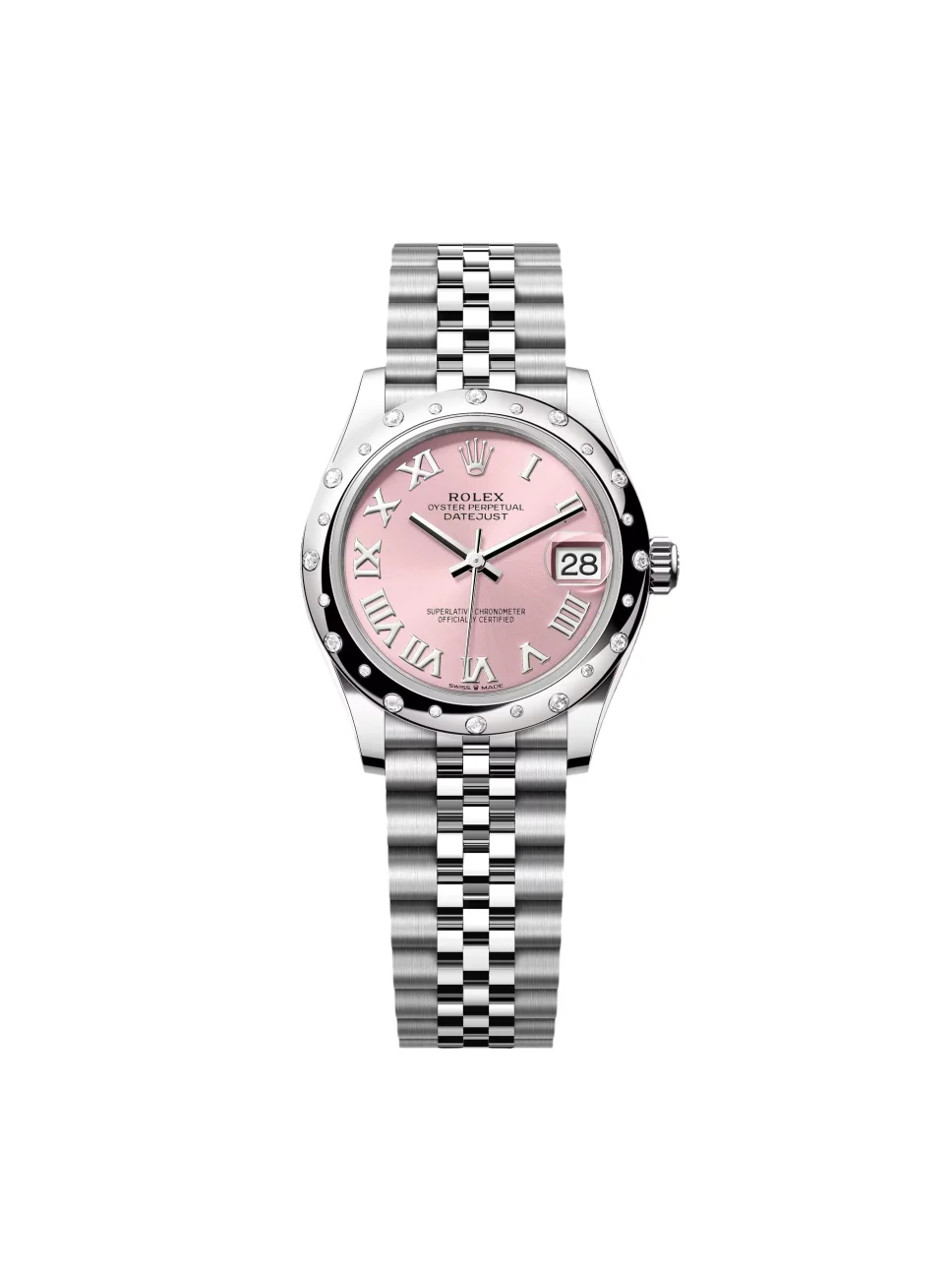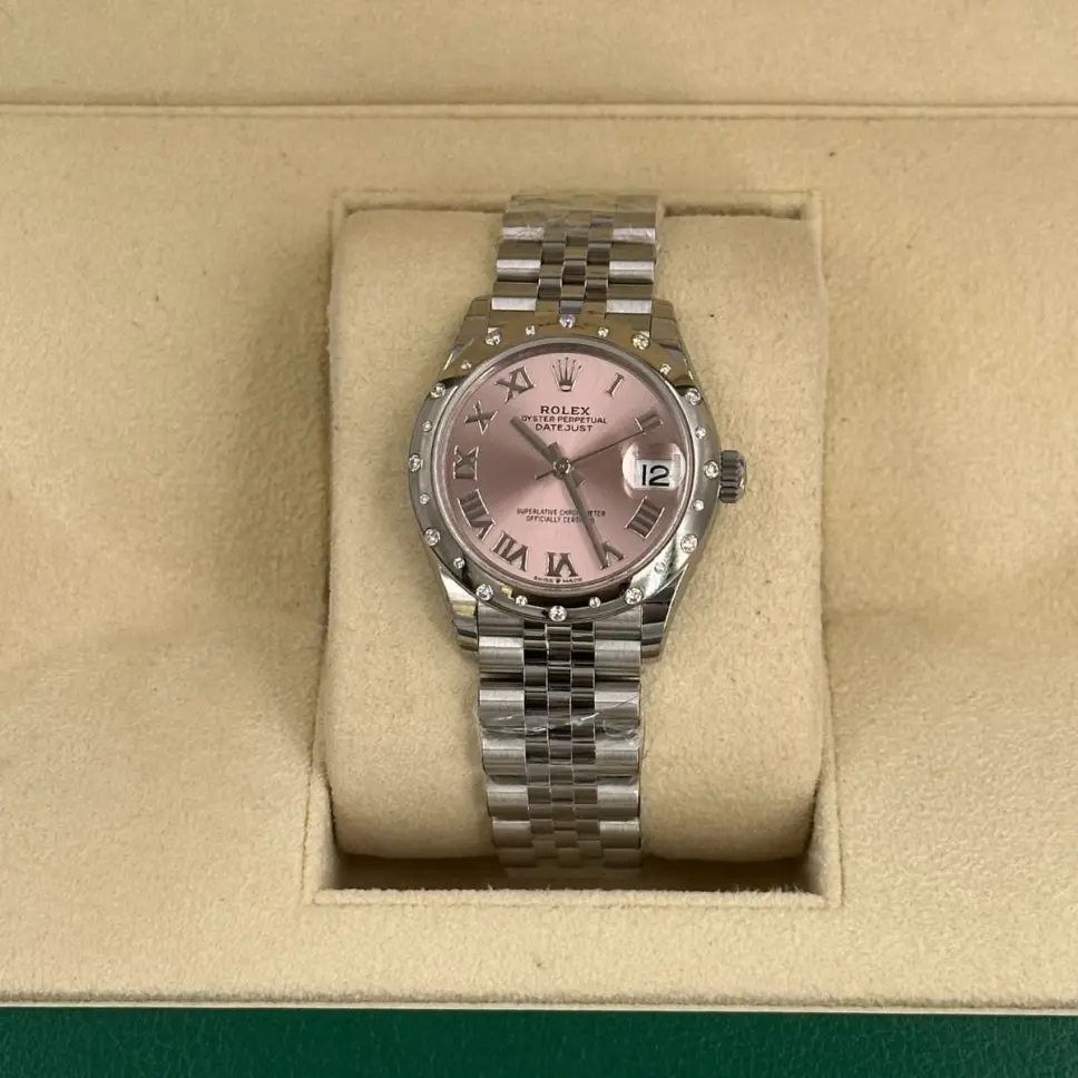 Rolex Datejust m278344-0021/0022 Pink Dial 31mm Domed Diamond Oyster Watch
