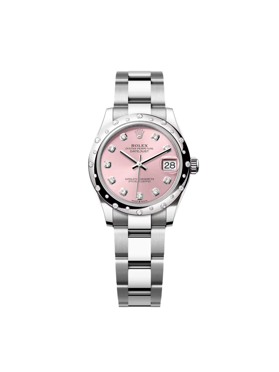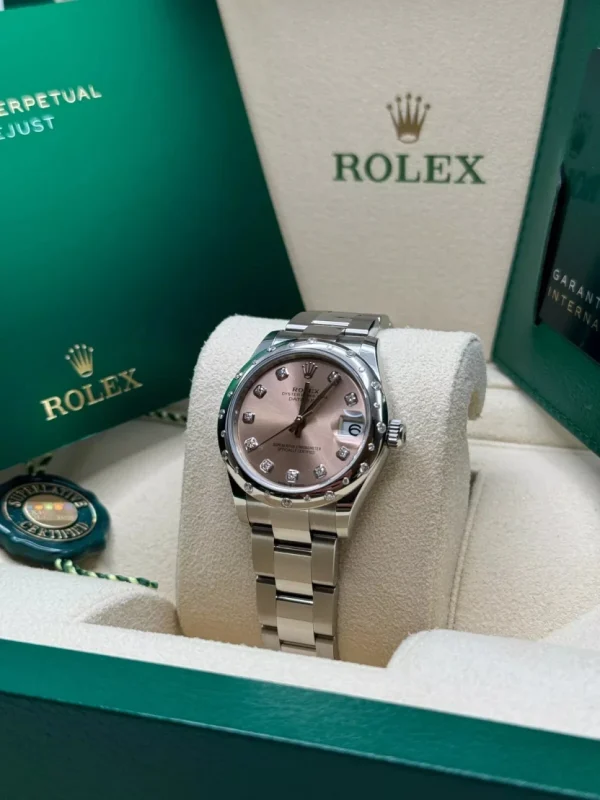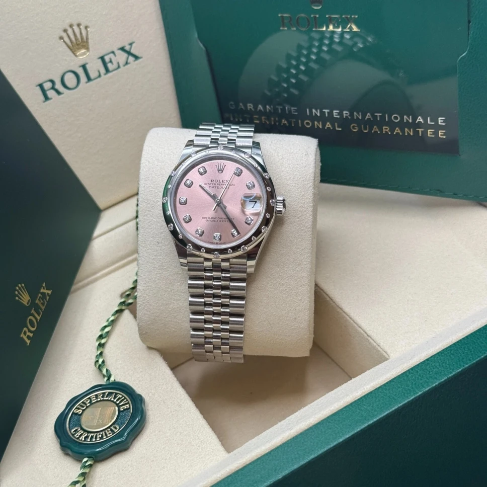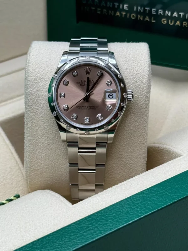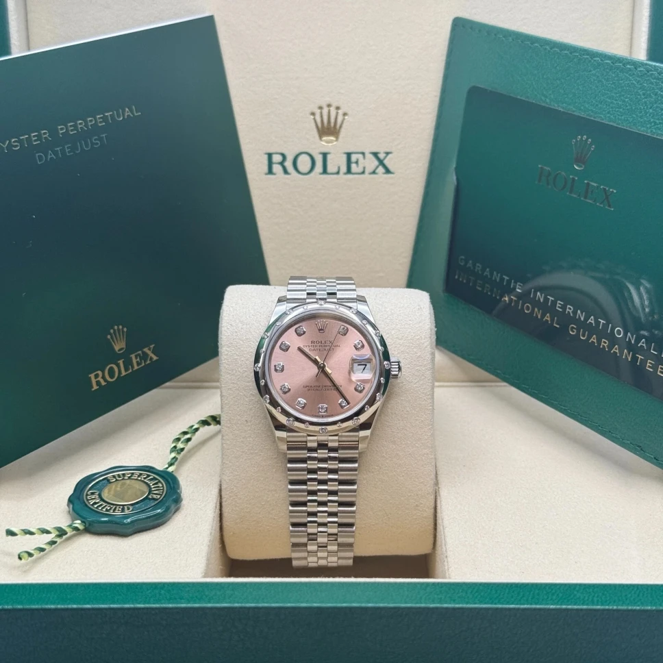 Rolex Datejust m278344-0033/0034 Pink Dial 31mm Domed Diamond Oyster Watch