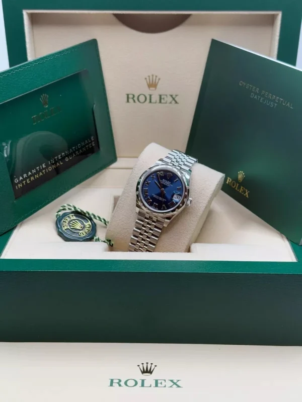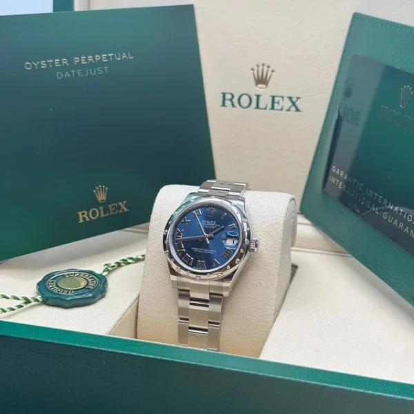 Be the first to review “Rolex Datejust m278344-0035/0036 Bright Blue Dial 31mm Domed Diamond Oyster Watch”