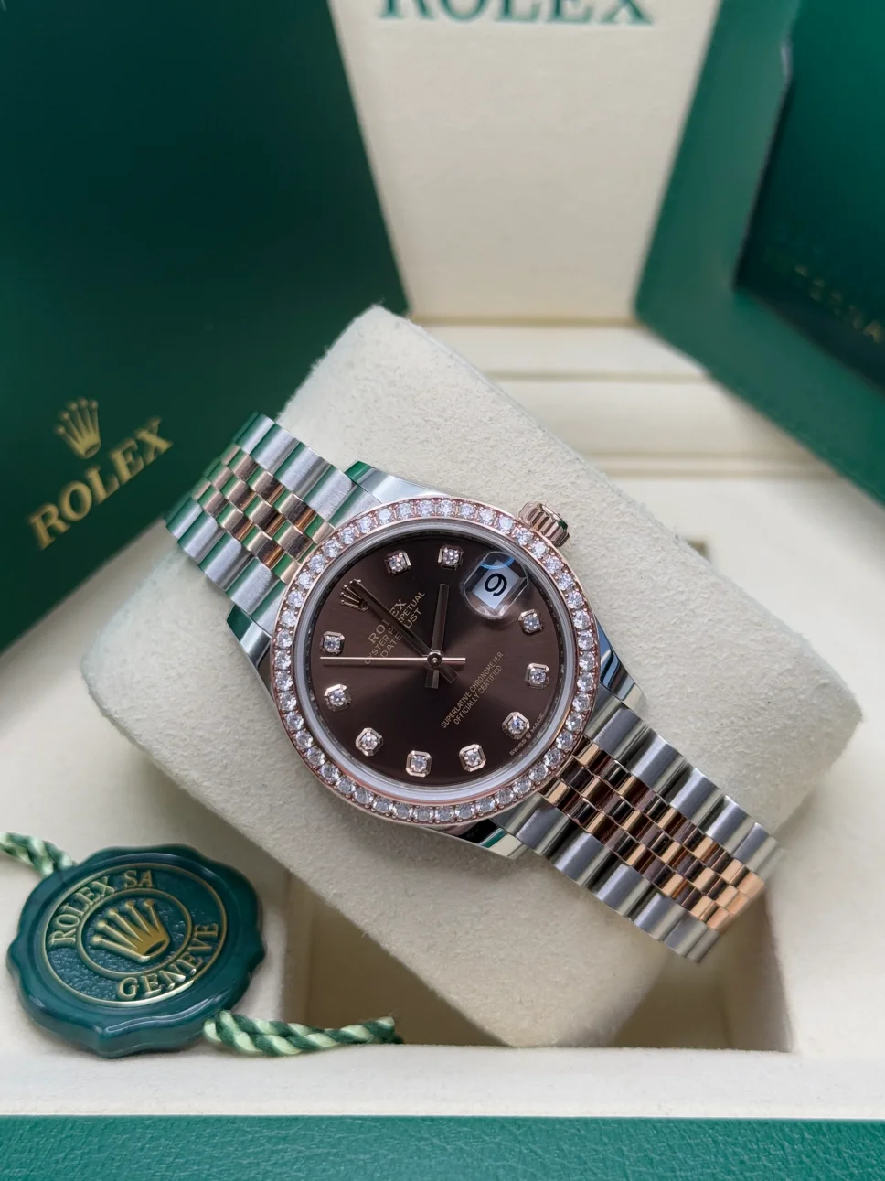 Be the first to review “Rolex Datejust m278381-0027/0028 Chocolate Diamond 31mm Dial Diamond-Set Bezel and Oyster Bracelet Watch”
