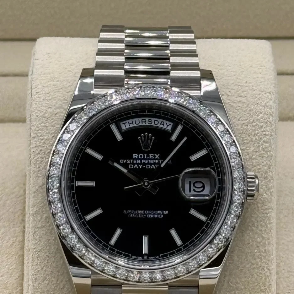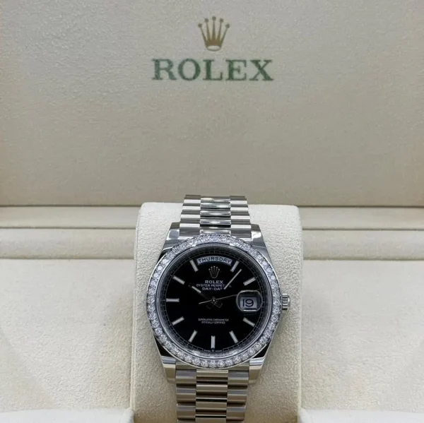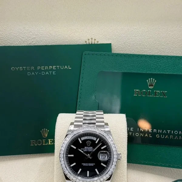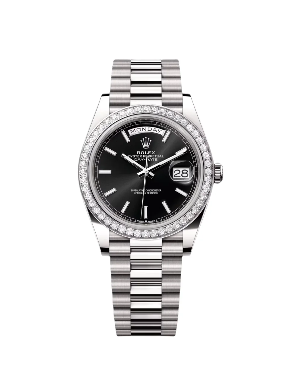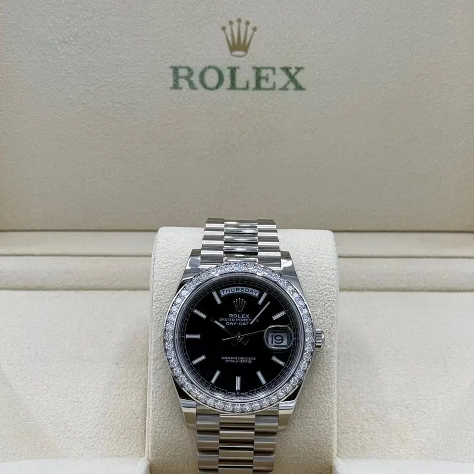 Rolex Day-Date 40mm 228349RBR-0002 Bright Black Dial President Bracelet