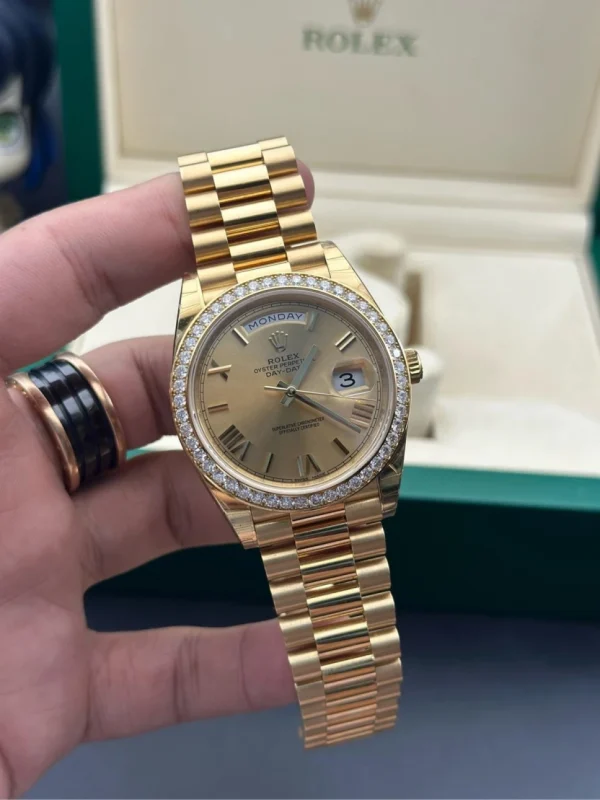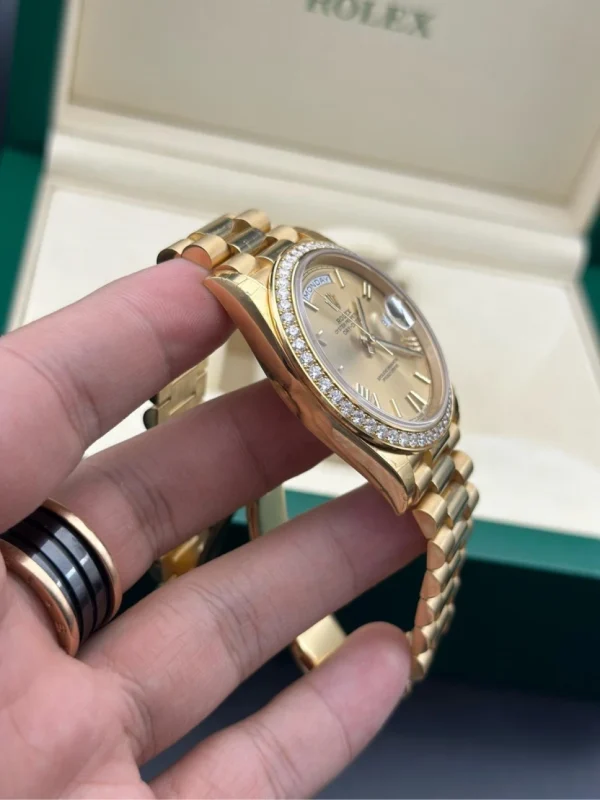 8 reviews for Rolex Day-Date 40mm Champagne Dial and Diamond Bezel Yellow Gold President Bracelet 228348RBR-0003