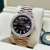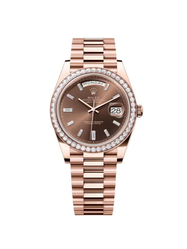 Rolex Day-Date 40mm Chocolate Baguette Diamond Dial Diamond Bezel Dial Watch 228345RBR