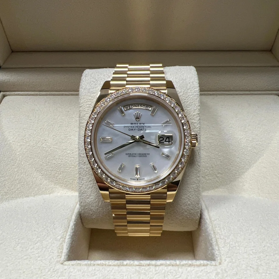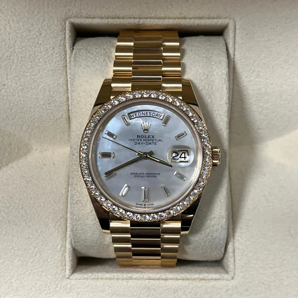 Rolex Day-Date 40mm White Mother-of-Pearl Dial President Watch 228348RBR-0046