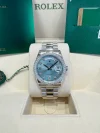 Case: Platinum case 36mm in diameter. Rolex logo on crown