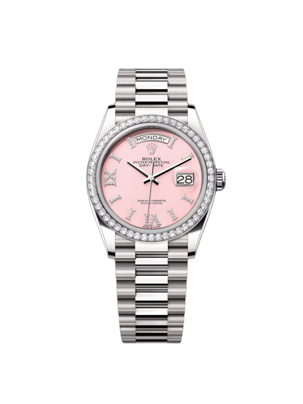 Dial Color | Pink opal set with diamonds |