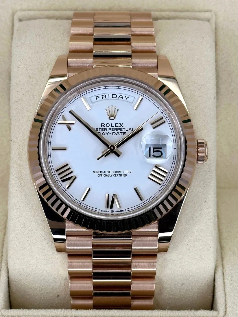 Rolex Day-Date “President” 40mm Everose Gold White Roman Dial – 228235
