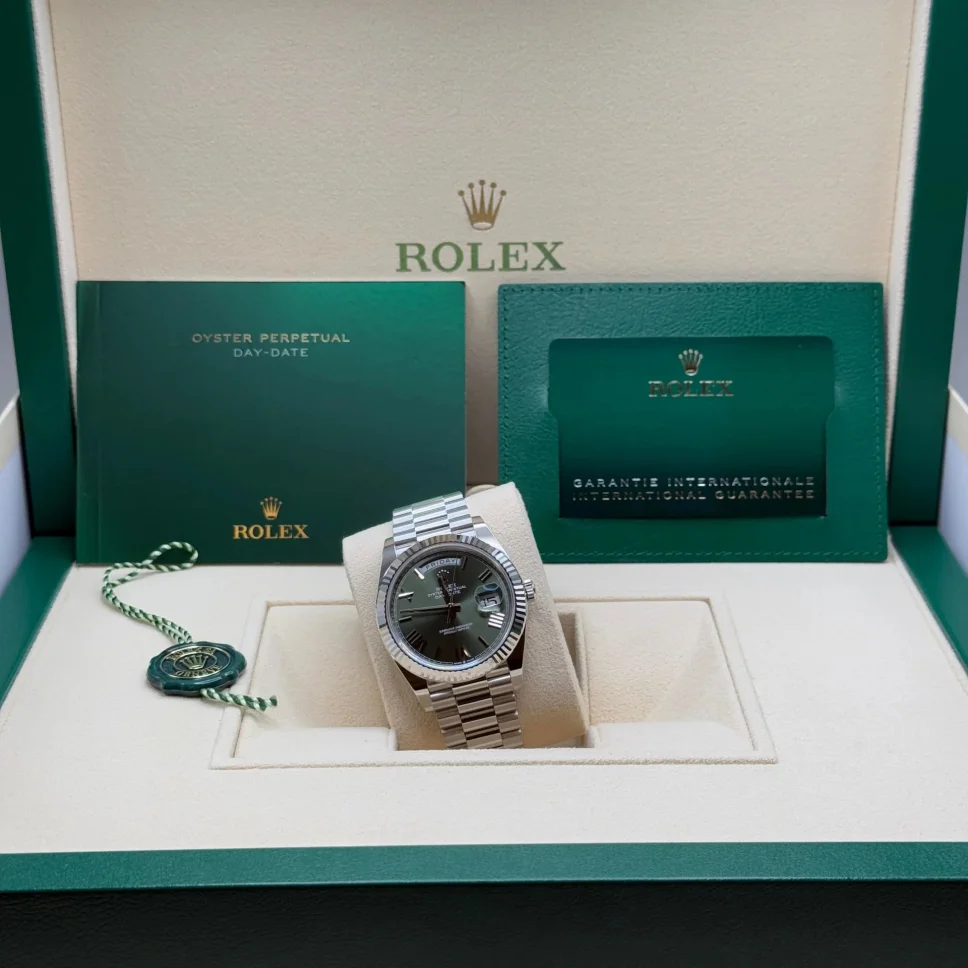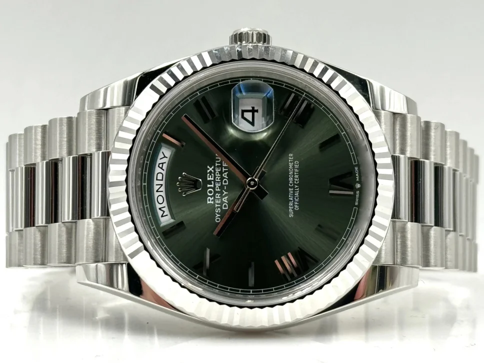 Rolex Day-Date “President” 40mm Platinum Green Olive Roman Dial – 228236