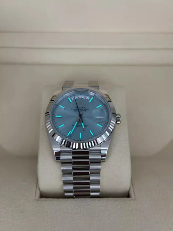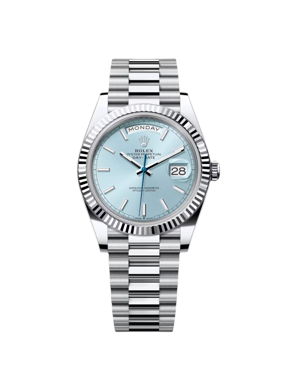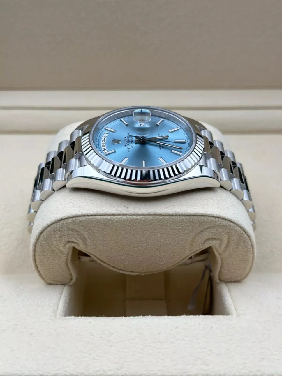 Rolex Day-Date “President” 40mm Platinum Ice Blue Index Dial – 228236