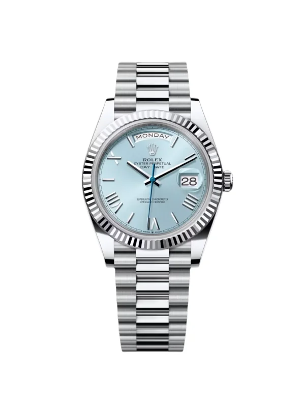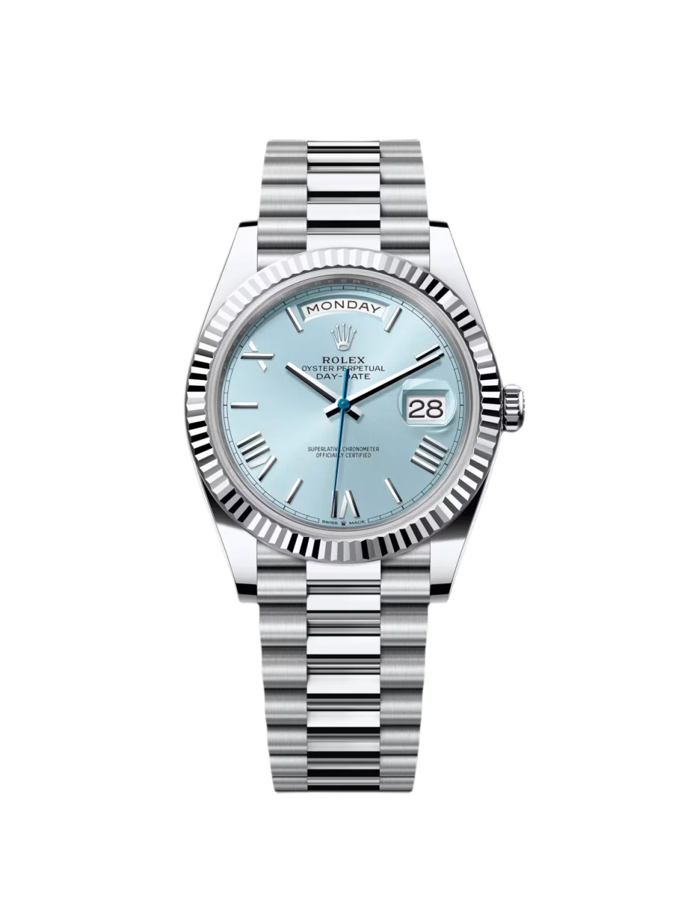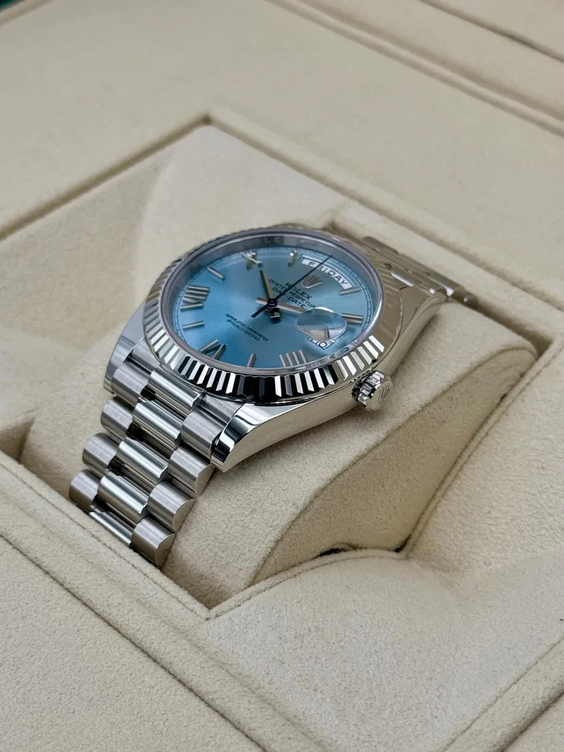 Rolex Day-Date “President” 40mm Platinum Ice Blue Roman Dial – 228236