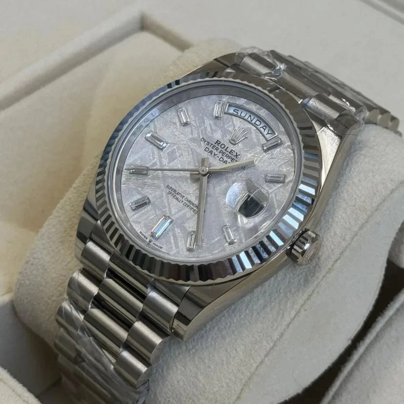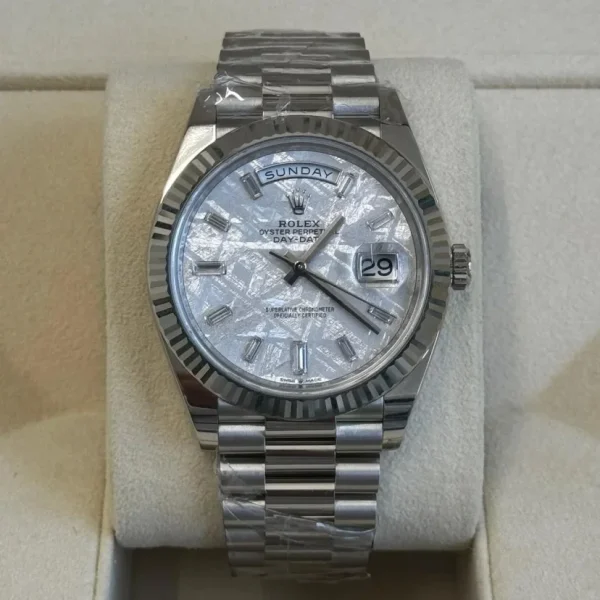 Rolex Day-Date “President” 40mm Platinum Meteorite Diamond Baguette Dial – 228236