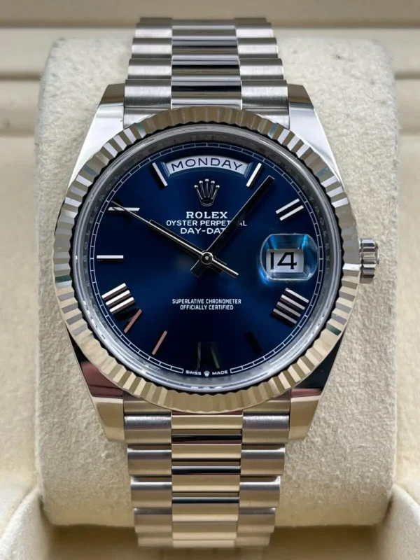 Rolex Day-Date “President” 40mm White Gold Blue Roman Dial – 228239