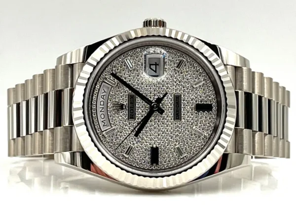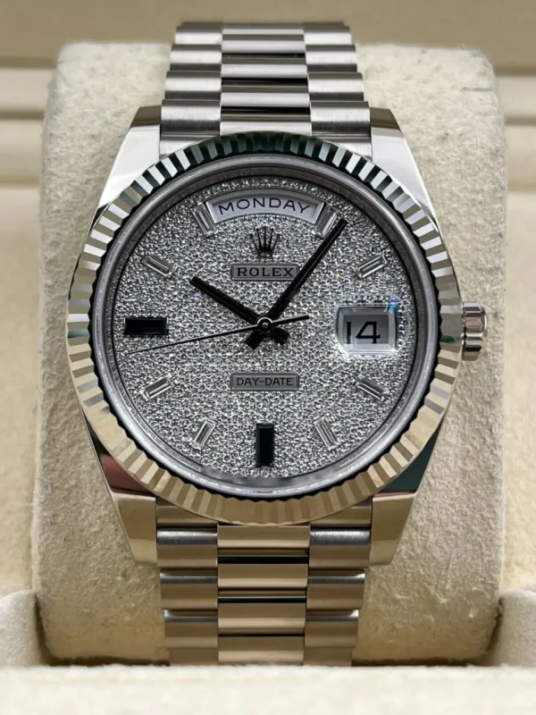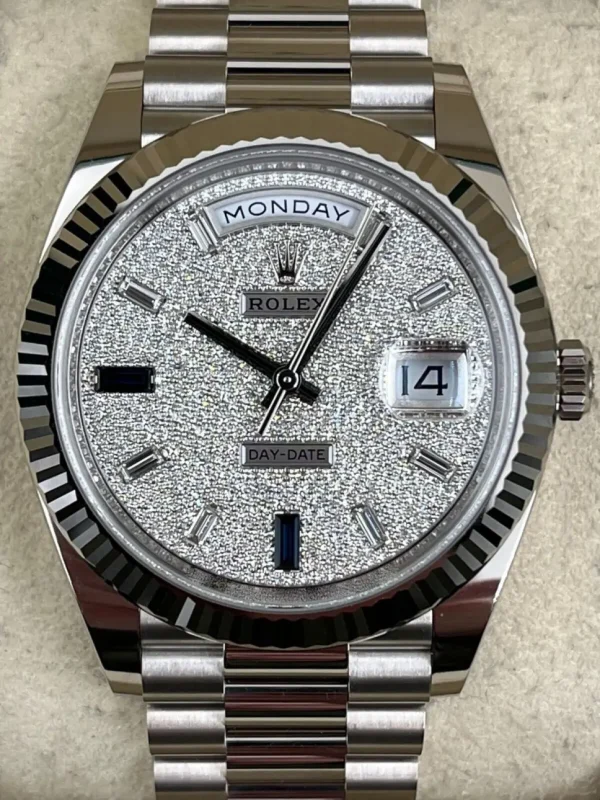 Rolex Day-Date “President” 40mm White Gold Pave Diamond Sapphire Dial – 228239