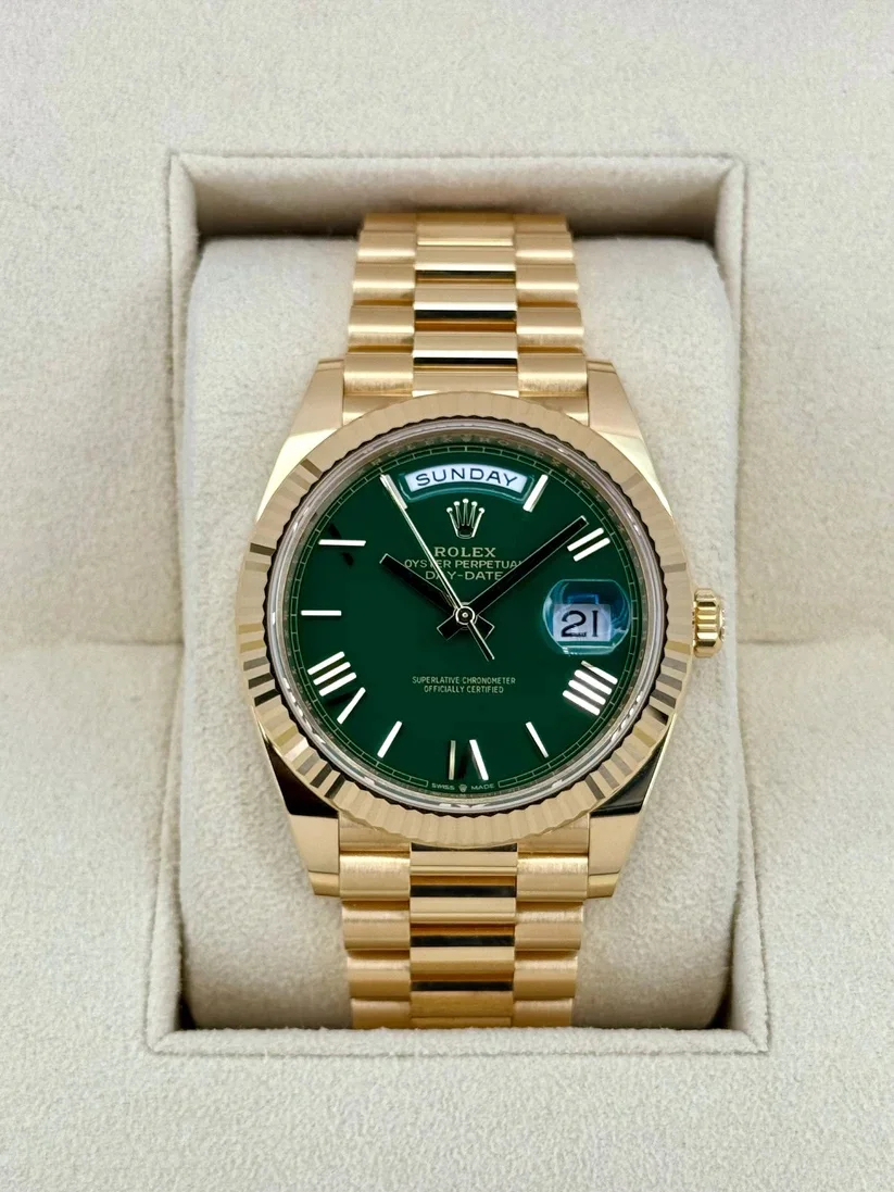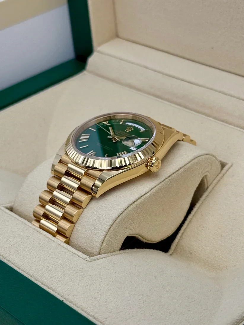 Rolex Day-Date “President” 40mm Yellow Gold Green Roman “Money” Dial – 228238