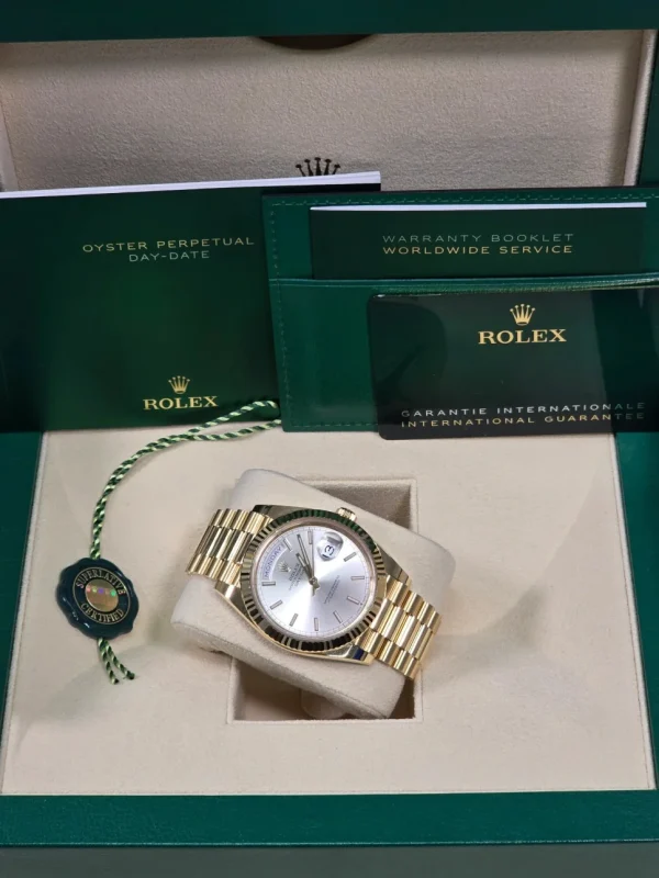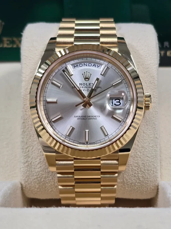 Rolex Day-Date “President” 40mm Yellow Gold Silver Index Dial – 228238