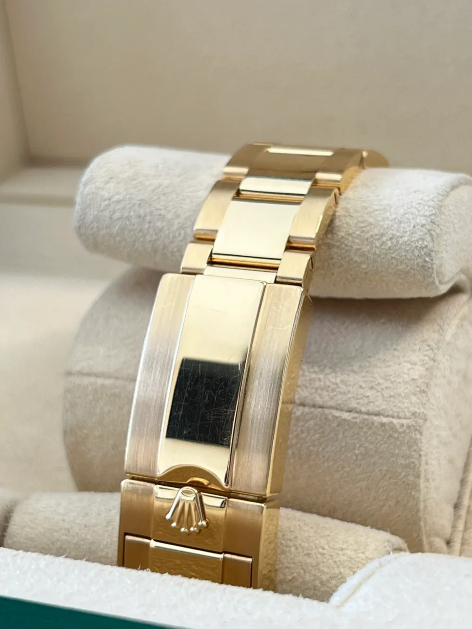 At the heart of this timepiece is Rolex Calibre 3186. The Automatic movement operates at 28800 A/h and keeps the hands revolving smoothly and accurately for precise, reliable timekeeping. It contains 31 Jewels, and picks up all the advantages of this high-performance ‘engine’, including a 50-hour power reserve.